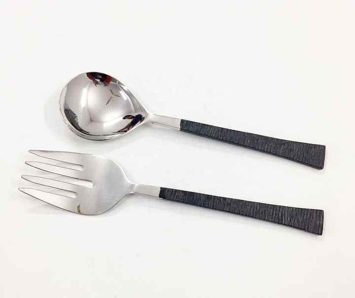 Personalised Salad Serving Spoon Fork Stainless Steel Salad Server Set Wood Resin Handle Silverware Tableware Kitchen Tool