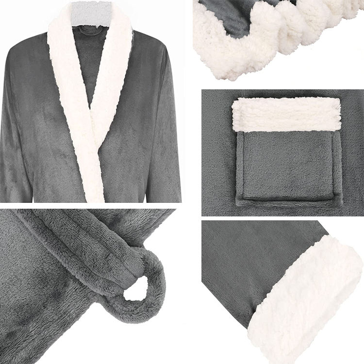 Personalised Sherpa Fleece Dressing Gown Custom Fleece Lined Plush Bath Robe Microfiber Winter Bathrobe