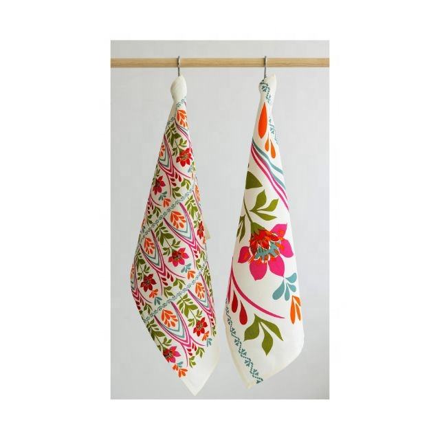 Personalizable Standard Size Floral Elegant Embroidered Kitchen Custom Pattern Absorbent Fast Drying Multifunctional Tea Towels