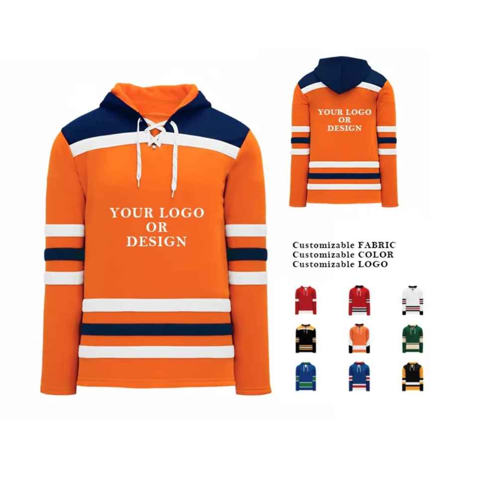 Personalize Cotton Ice Hockey Hoodies Unisex Custom Logos Men Hockey Hooded Sweatshirts with Laces Blank Team Wear Hoody