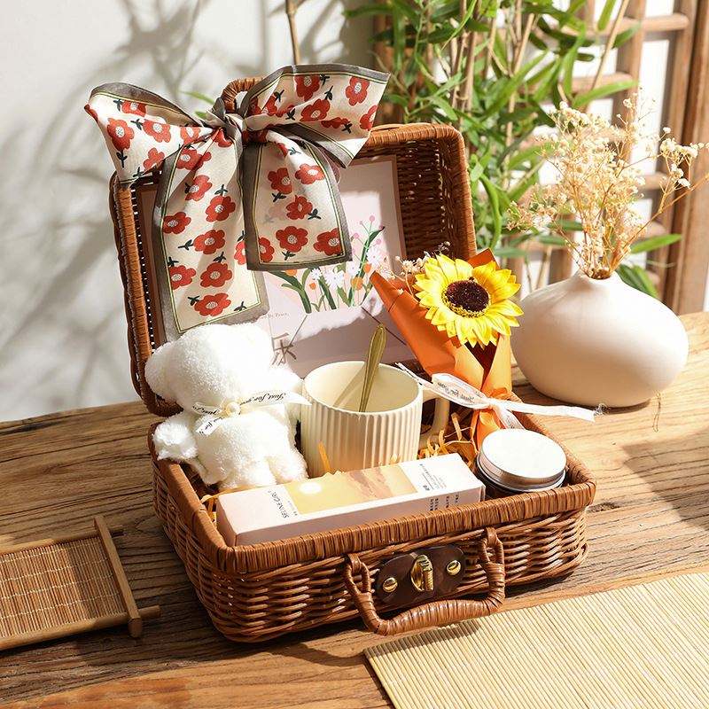 Vintage Hand-Held Rattan Gift Set