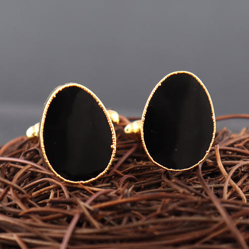 Personalized 13x18mm Egg Shape Black Onyx Men Women Fashion Cufflinks Gold Electroplating Unisex Shirt Cufflink and Tie Clip DIY