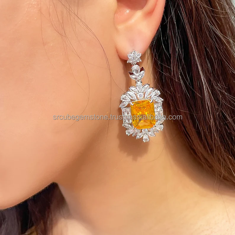Personalized 14K Gold Baguettes Gemstone Dangle Earrings Minimalist Moissanite Waterdrop Women 's Jewelry Best Gift