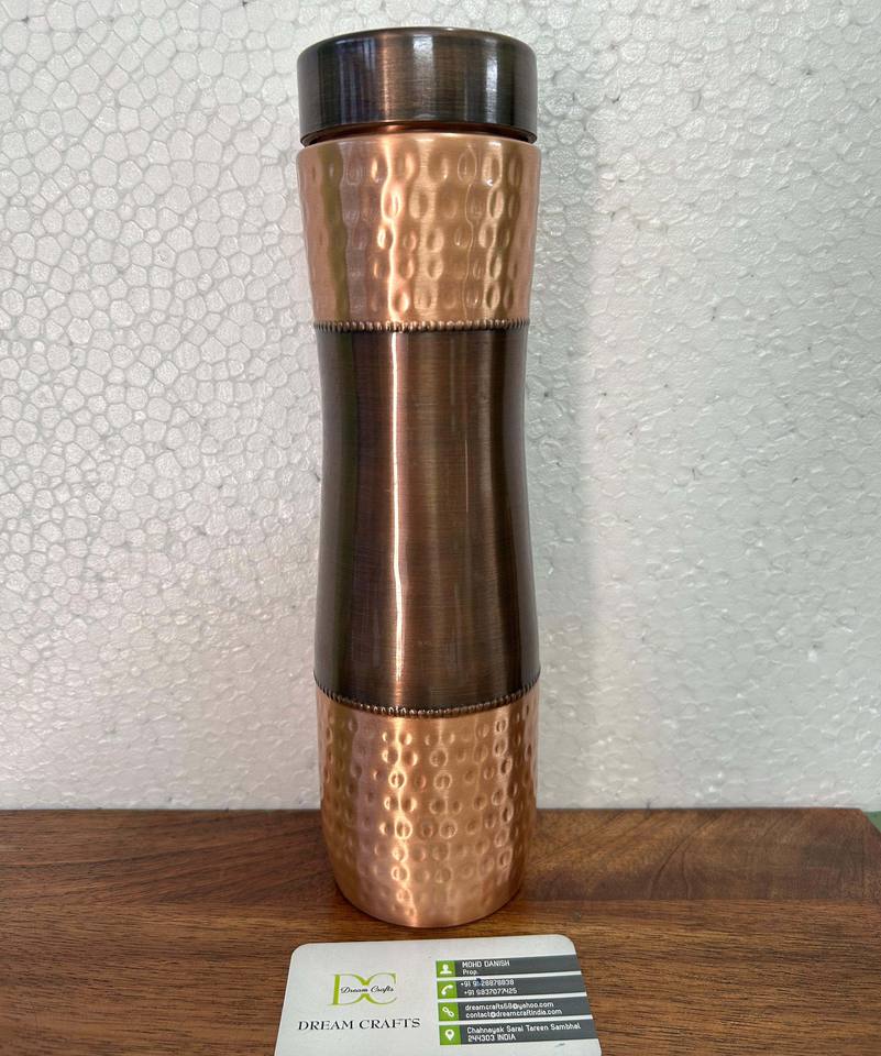Personalized 1L Copper Flask Hammered Design Leak-Proof Gym Yoga Meditation Vessel-Business Gift Carved Laser Crystal Material