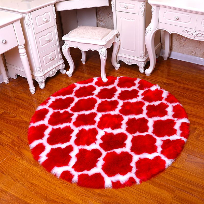 Personalized 5-6mm Silk Wool Blend Non-Slip Circle Fluffy Accent Carpet Animal Print Rug for Nursery Kids Room Home Use