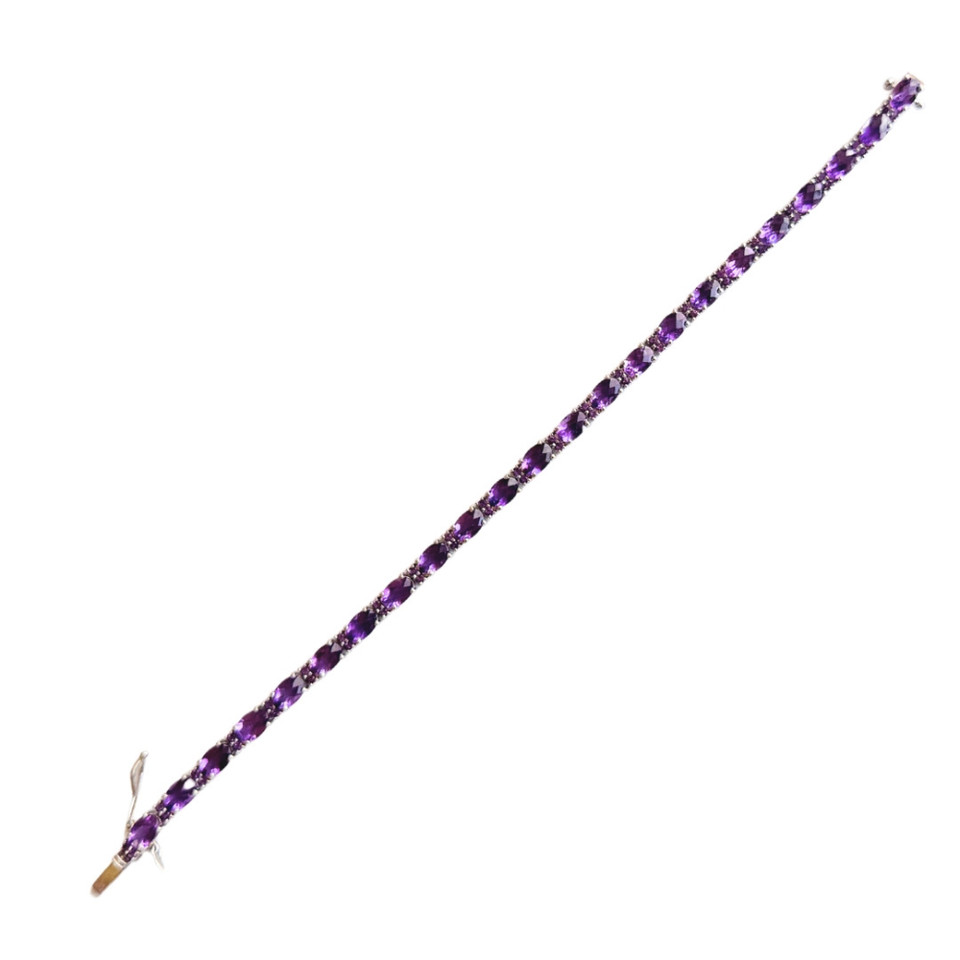 Personalized 925 Sterling Silver Tennis Bracelet Set Real Amethyst Prong Rhodium Fine Chain Link Bracelets for Weddings Gift