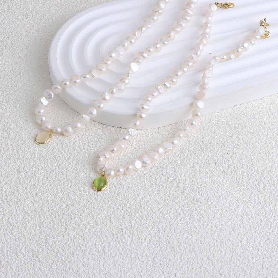 Personalized Alien Freshwater Pearl Necklace for Women Fashionable Light Luxury Green Cat Eye Stone Fashion Pendant Necklaces