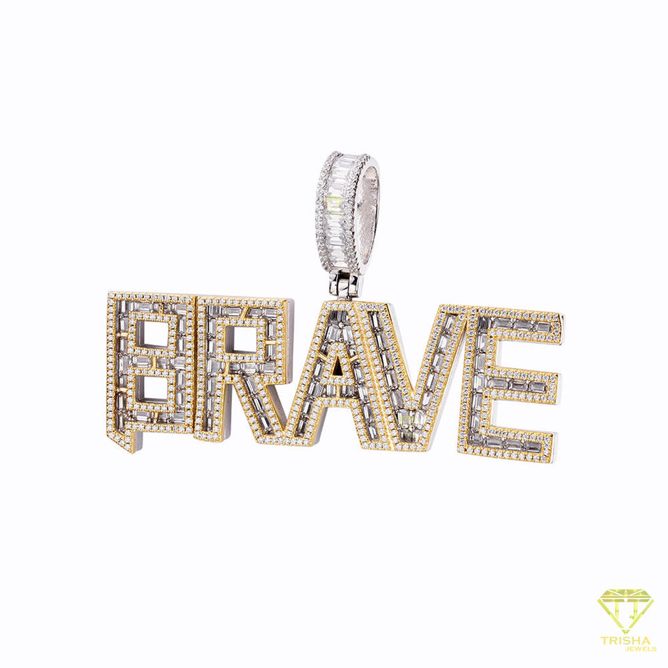 Personalized BRAVE Letter Pendant Custom Baguette VVS Lab Grown Diamond Charm in 925 Sterling Silver