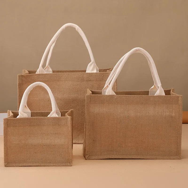 Eco-Friendly Jute Tote Bags with Custom Name Logo Mini PU Handled Shopping Bags Cartoon Pattern for Daily Use Gift Promotion