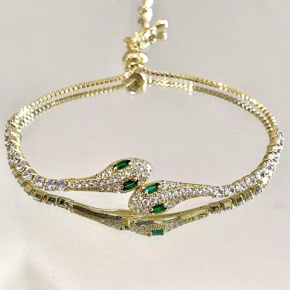 Personalized Black Crystal Eyes Snake Bracelet with Gold Plating Fashionable Trendy Religious Pearl Bangles for Parties