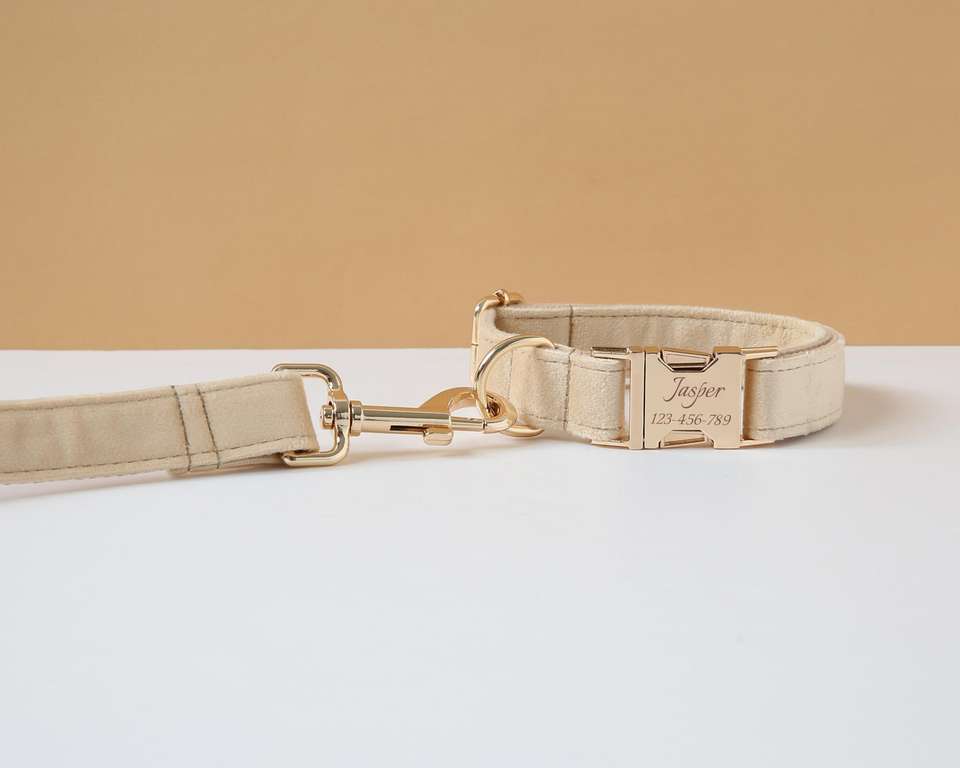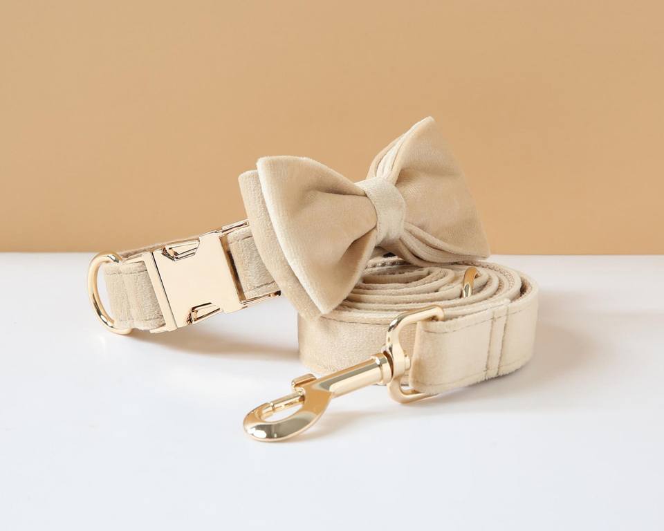 Personalized Bow Set, Beige Veet Custom Bowtie Collar,Wedding Dog And Lead For Boy Dog, Soft Collar On Sale UK