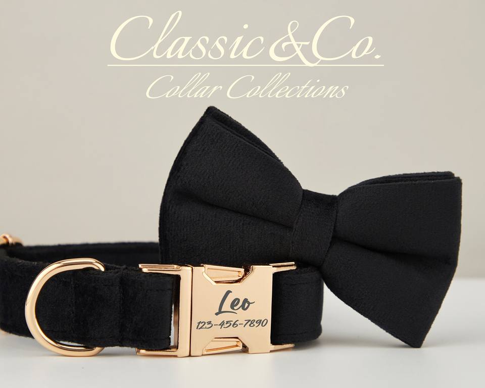 Personalized Bow Tie Leash,Black Veet Collar,Metal Buckle,Wedding Dog Gift,Dog Name Collar