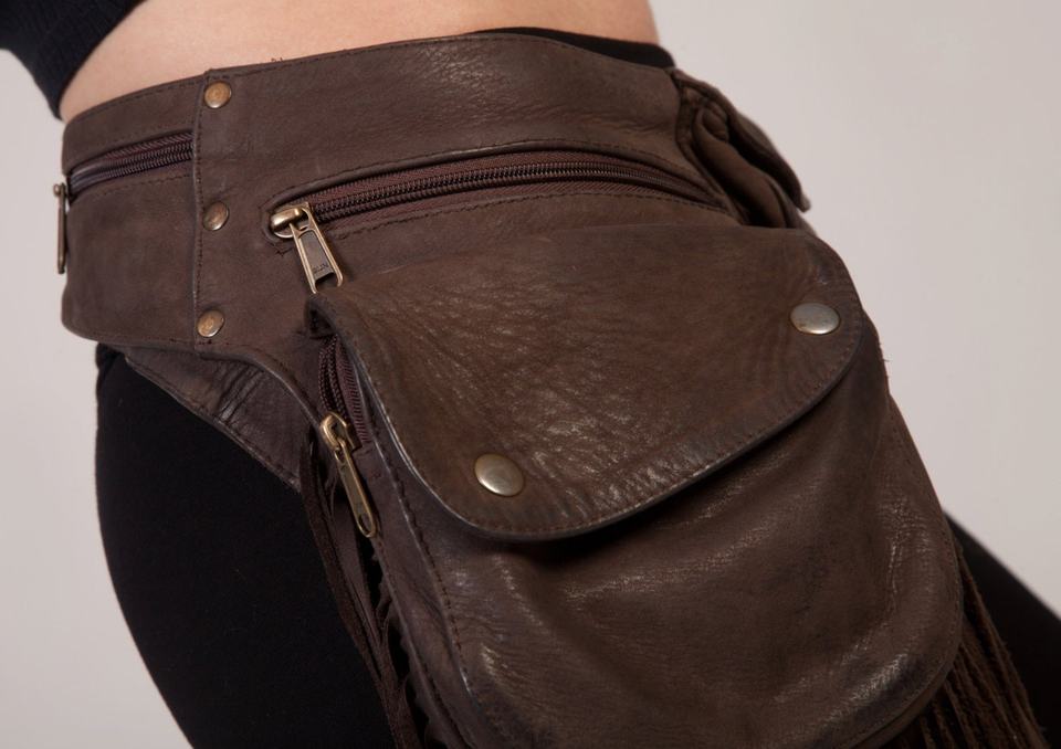Personalized Brown Genuine Leather Utility Belt Travel Bum Pocket Festival Gifts for Him & Her LWB-0073