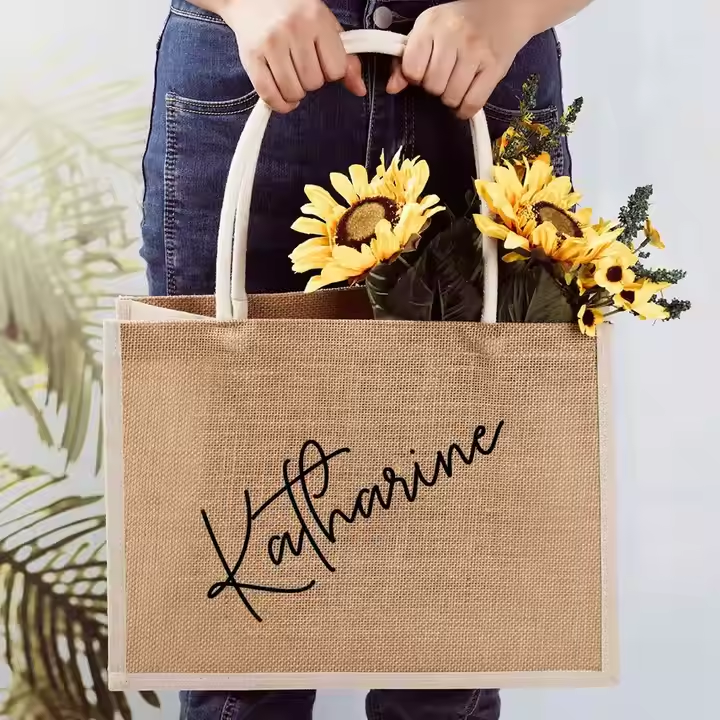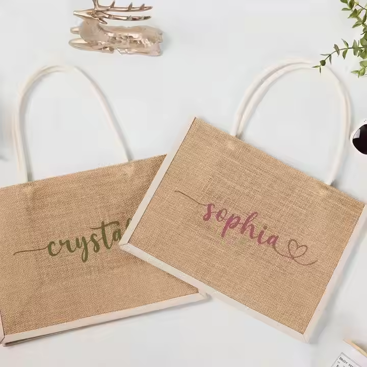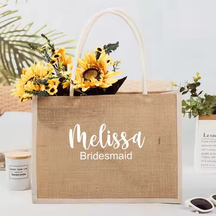 Personalized Bulk Fashion Bridesmaid Jute Bags Silk Screen Printed Mixed Colors Travel Beach Girls Trip Proposal Gift Bridal