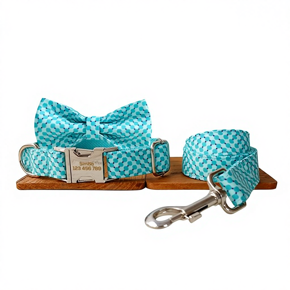 Personalized Custom Cat & Dog Collar Blue Aqua Pool Party Cotton/Nylon Fabric for Boys and Girls
