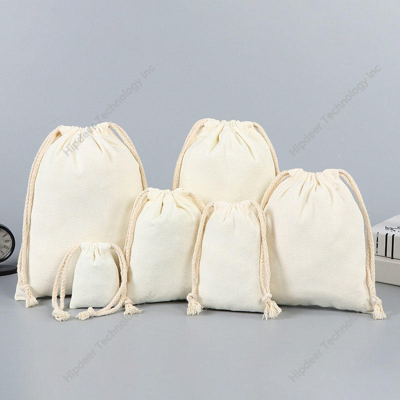 Personalized Cloth Custom logo Recycled Jewelry Gift Package Small Pouch Canvas Cotton Drawstring Shoe Bags logo Cotton Dust Bag