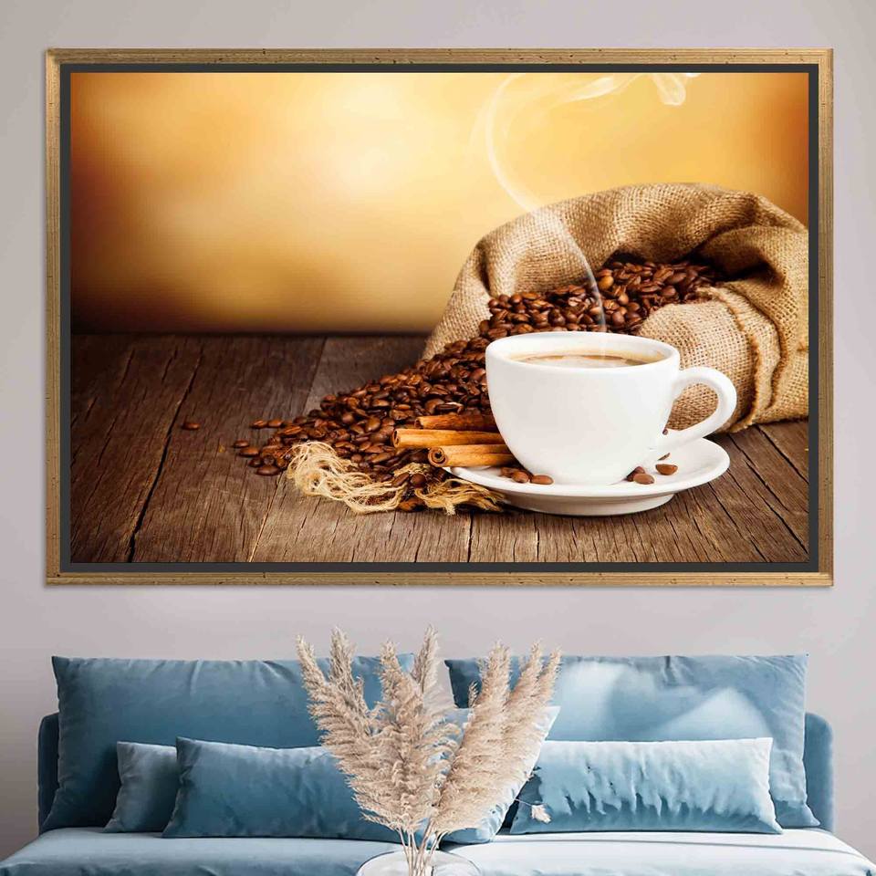 Personalized Coffee Canvas Art: Elegant Kitchen Decor & Coffee Lover Gift,GOLD FRAMED CANVAS