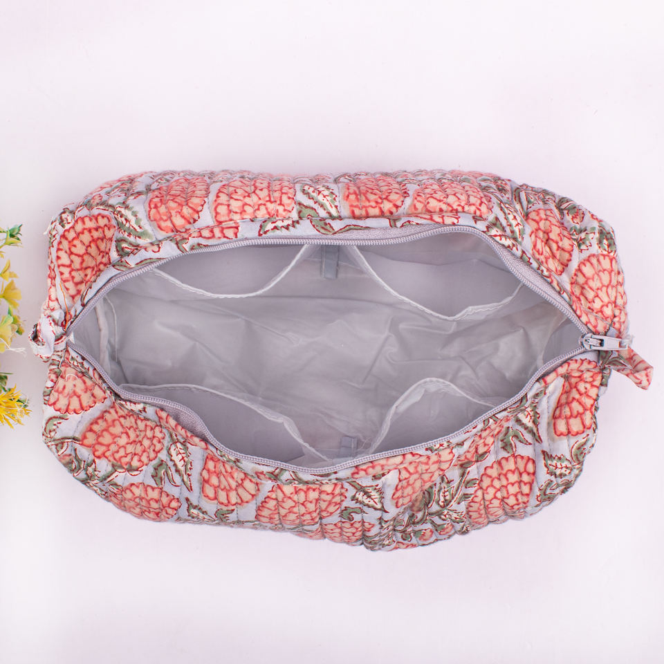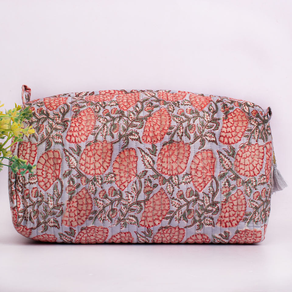 Personalized Cotton Block Printed Large Portable Makeup Bag Quilted Cosmetic Summer Pouch Bag Fashionable Characters Pattern