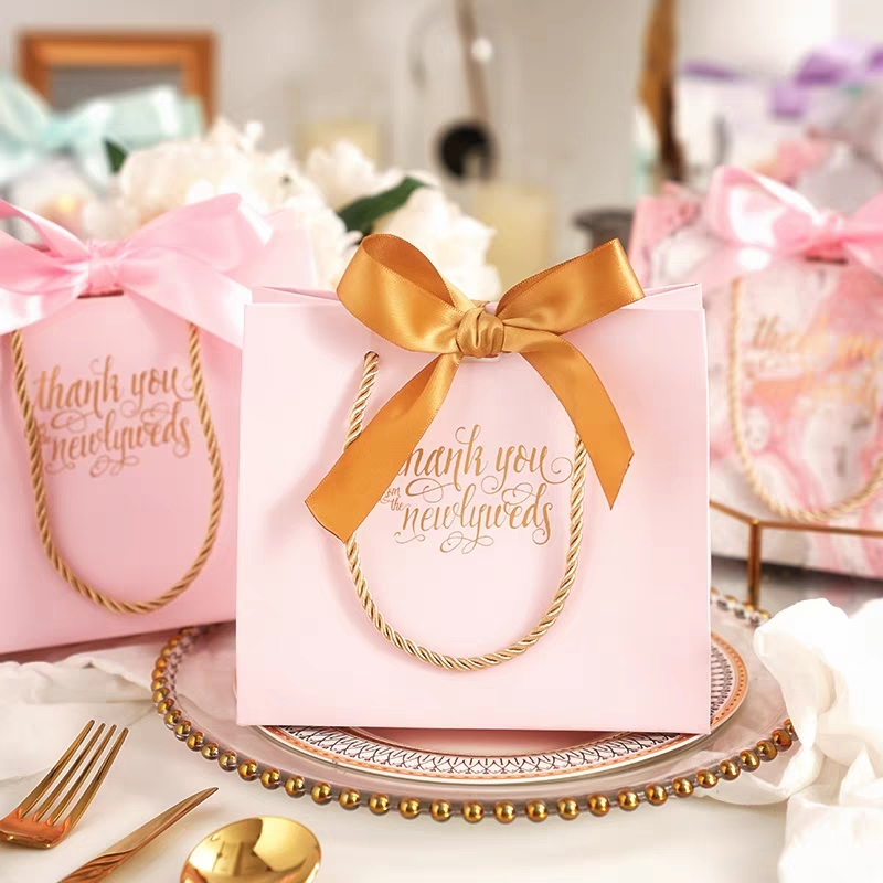 Personalized Custom Colorful Printing Paper Bags Small Wedding Souvenir Beautiful Elegant Handheld Gift Bags with Ribbon Bowknot
