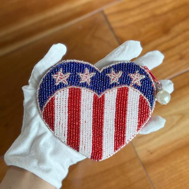 Personalized Custom Glass Beaded Tote Bag Custom Color Shape Wedding Bridesmaid Gift Blue Floral Design MS Handicraft Certified