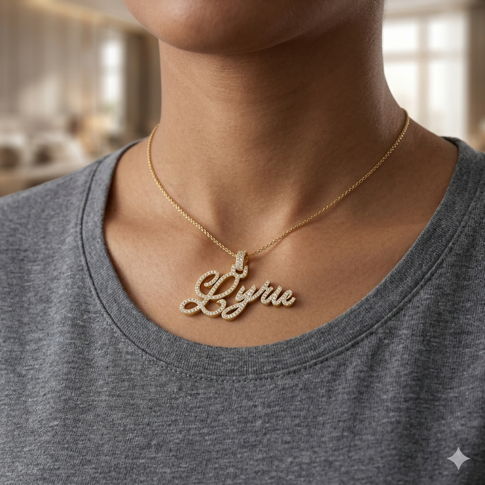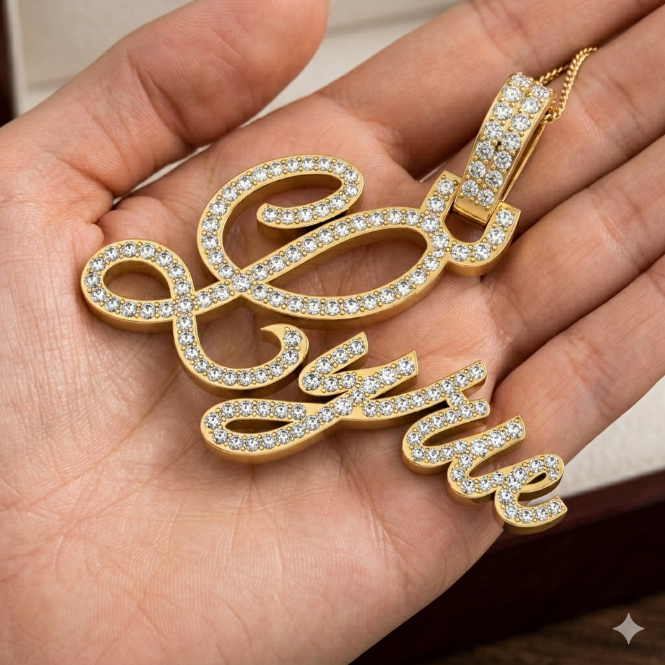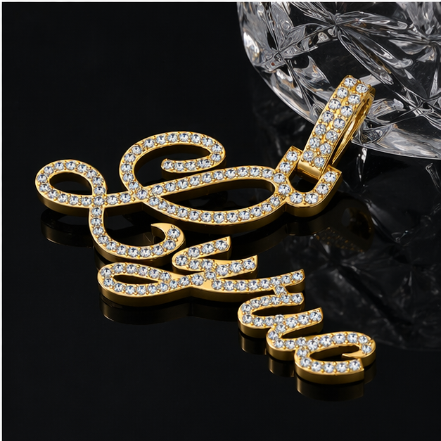 Personalized Custom Iced Cursive Initial Letter Name Pendants Hip Hop 925 Silver Rhodium Plated Natural Diamond Fine Necklaces