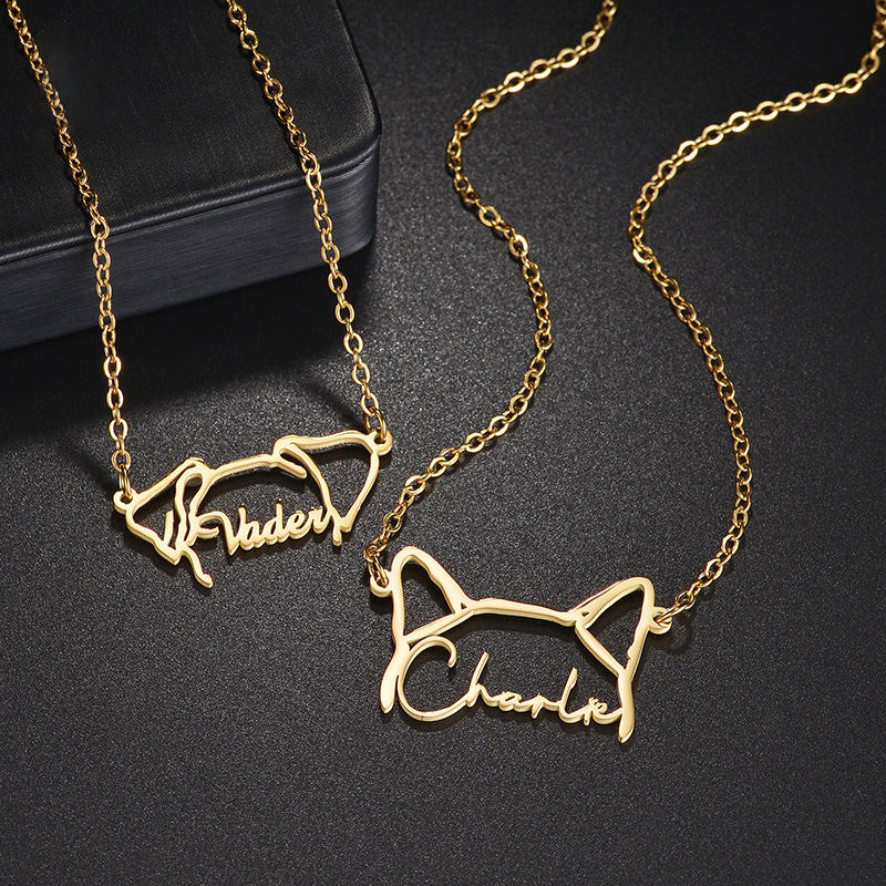 Personalized Custom Name Necklace Cat Dog Ears Hollow Letter Pendant Gold Plated Stainless Steel Women Men UIONEN 2116