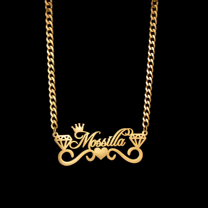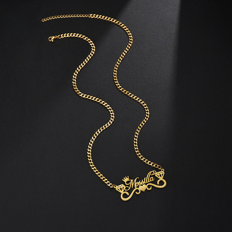 Personalized Custom Name Necklace Hollow Double Diamond Crown Letter Pendant Stainless Steel Necklace for Women Men Uionen 2120
