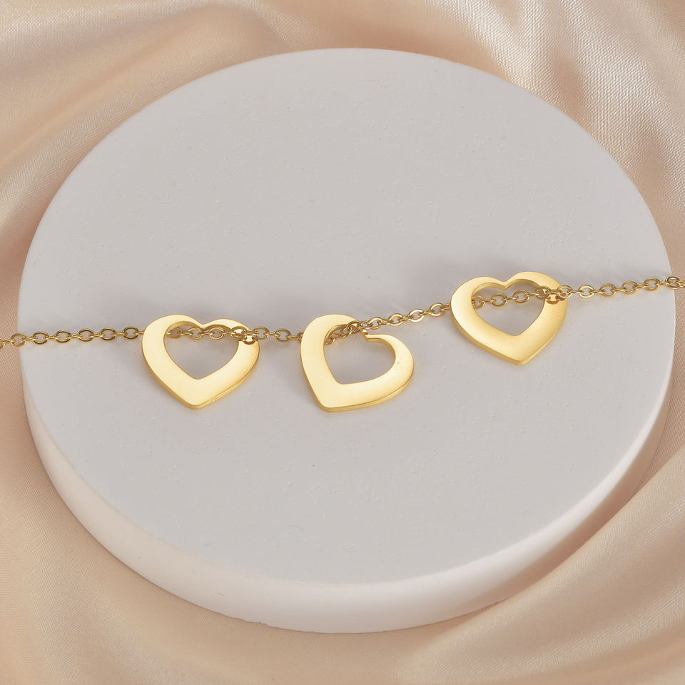 Personalized Custom Name Necklace Three Heart Folded Pendant Laser Lettering Stainless Steel Necklace for Women Men Uionen 2075