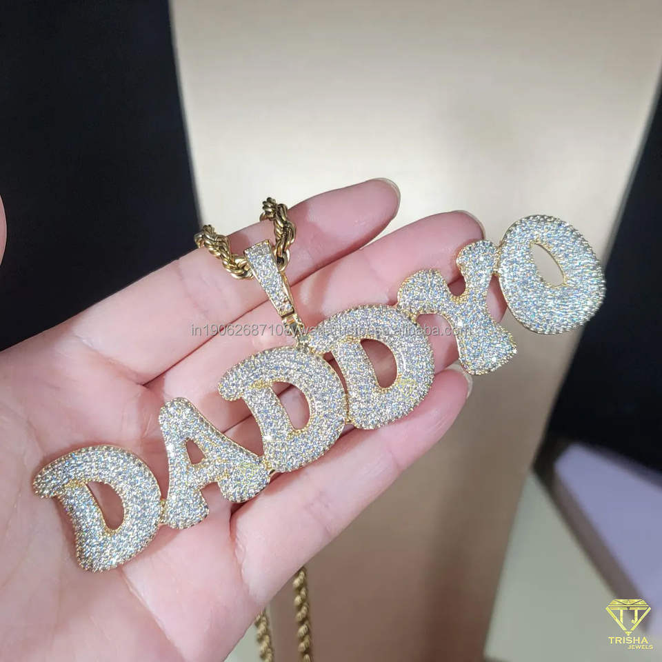 Personalized DADDYO Name VVS Lab Grown Iced Pendant on Premium Silver Rope Chain Bold Fashion Statement for Men