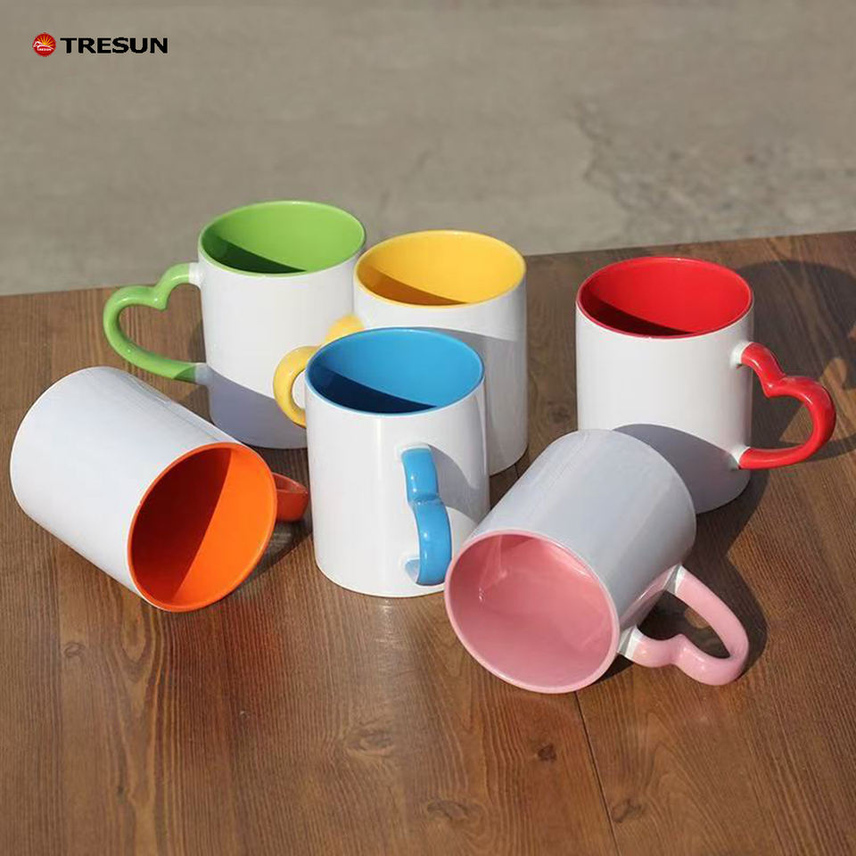 Personalized DIY Logo 11oz Heart Color Handle Inner Color Mug Sublimation Blank Inner Color Mug
