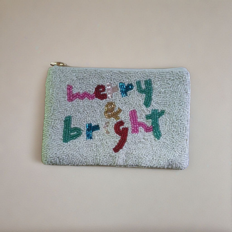 Personalized Decorative Game Day Coin Storage Hand Beaded Purse with Zipper Closure Small Square Shapes Beaded Coin Bags