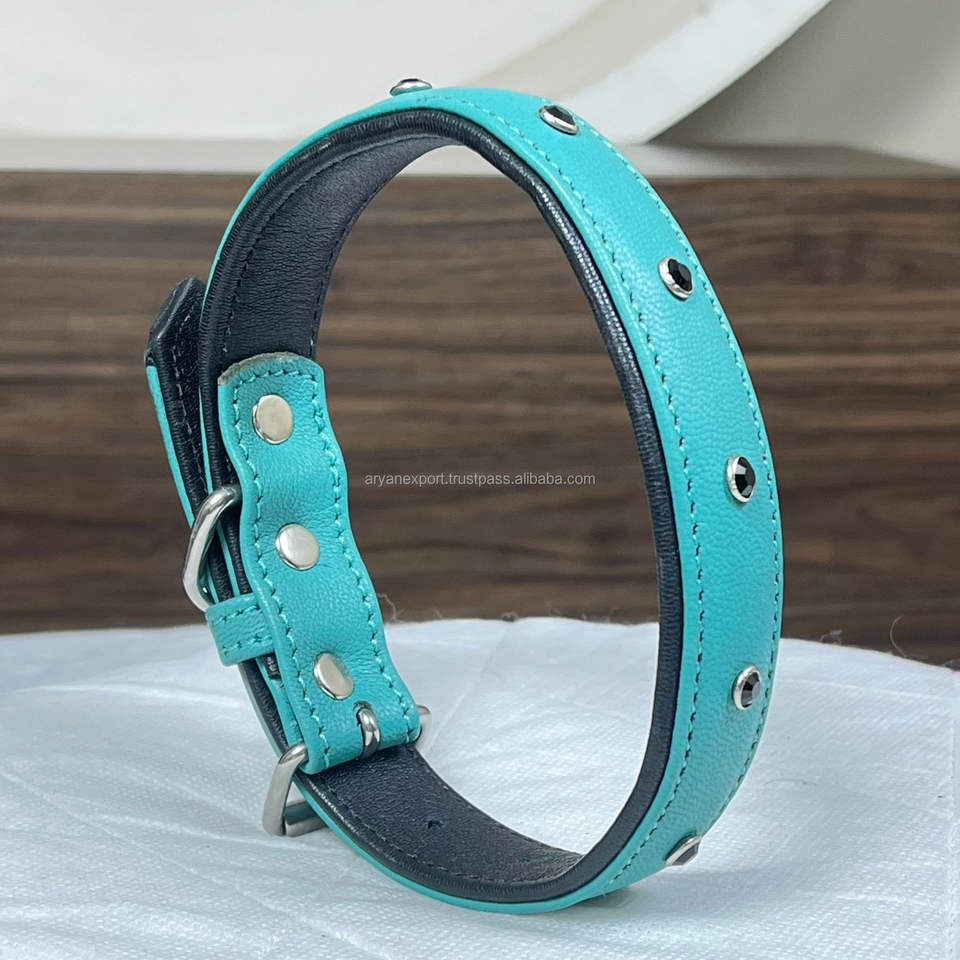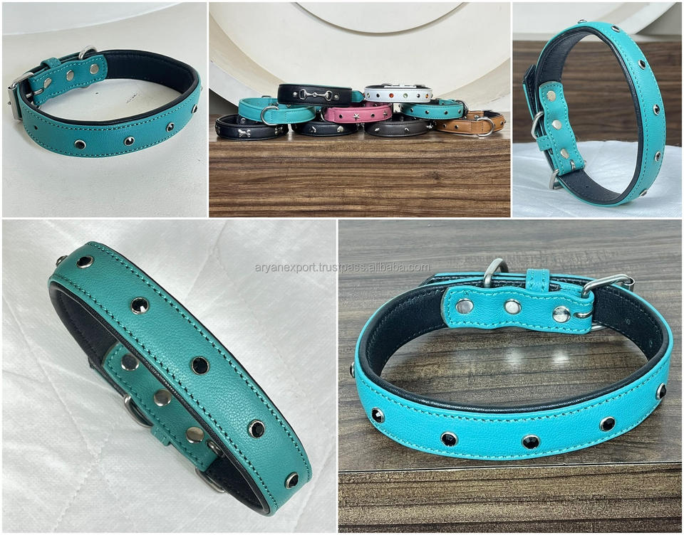 Personalized Designer Handcrafted Genuine Cowhide Leather Adjustable Padded Heavy Duty Dog Collar Manufacturer Pet Collars
