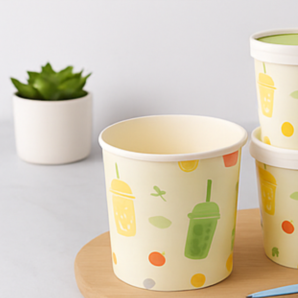 Personalized Eco-Friendly Double Wall Paper Ice Cream Cups with Dome Lid Disposable Dessert Bowls