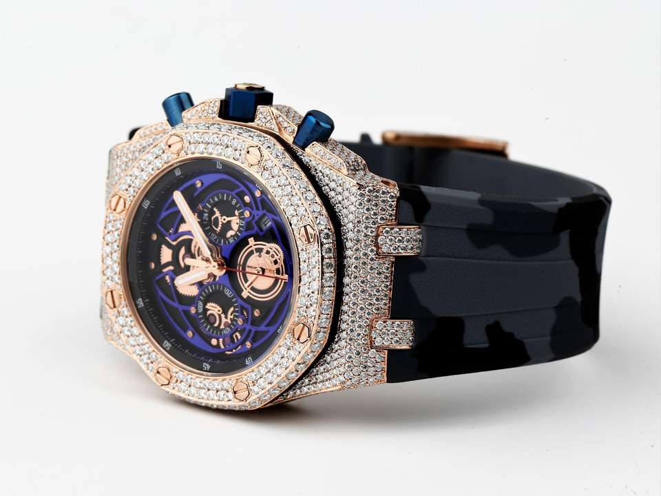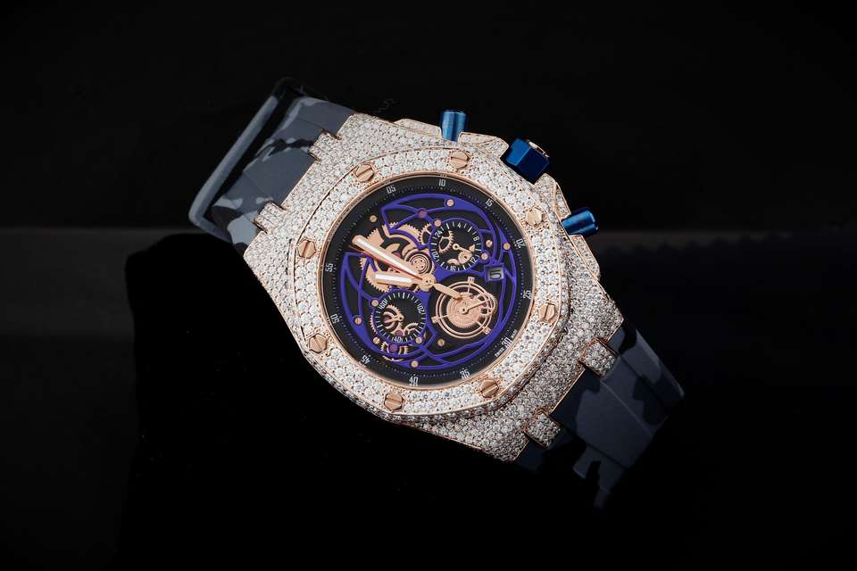 Personalized Elegant Style Fashion Business Sport Hip Hop Stainless Steel Case Rubber Band Watch Moissanite Diamond Date