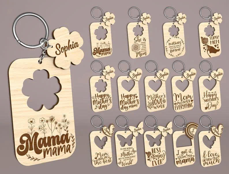 Personalized Engraved Eco-Friendly Wood Keychain 2X3 Inches De Larchi Mother's Day Promotion Gift