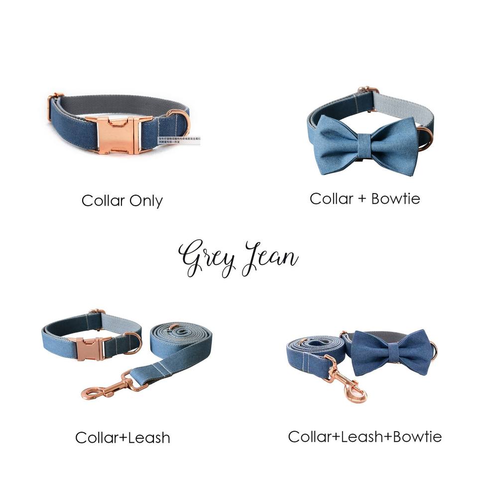 Personalized Engraved Handmade Dog Collar and Lead Set with Bow Tie