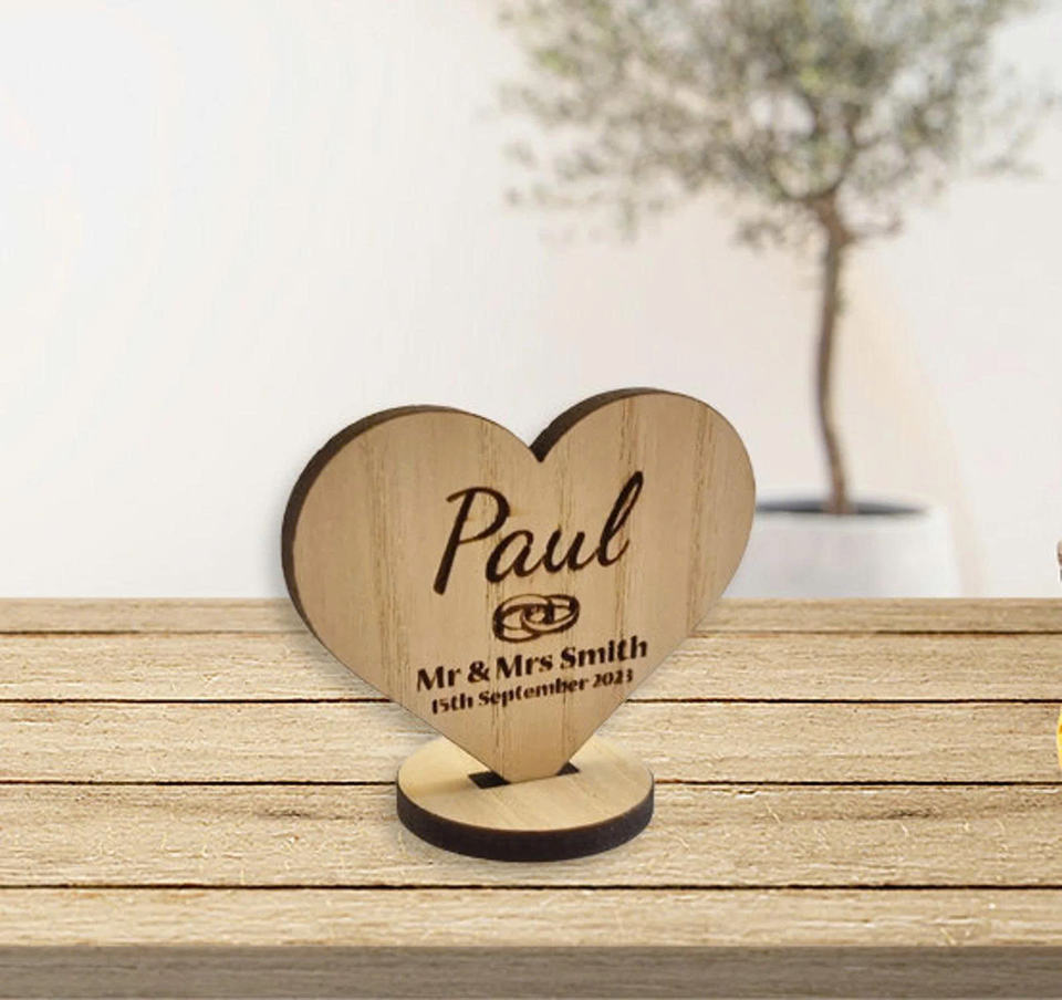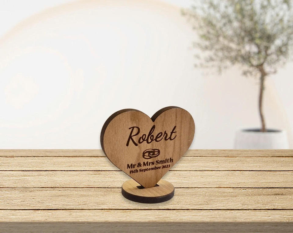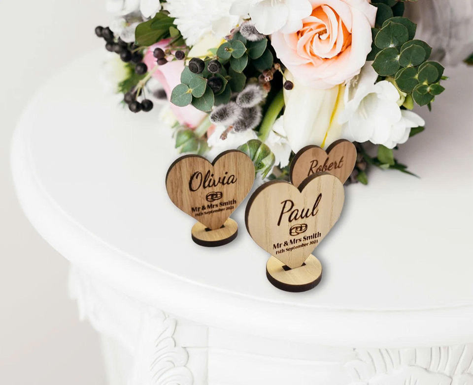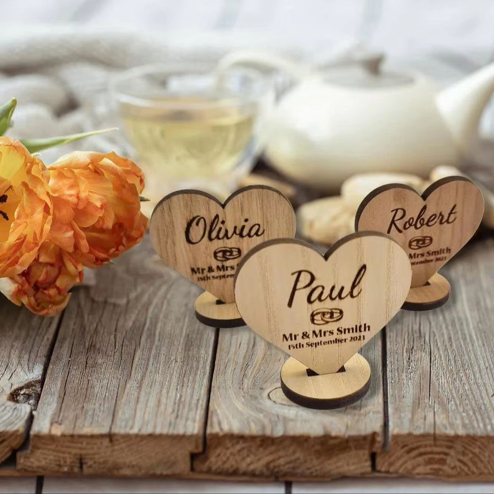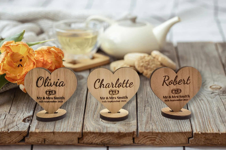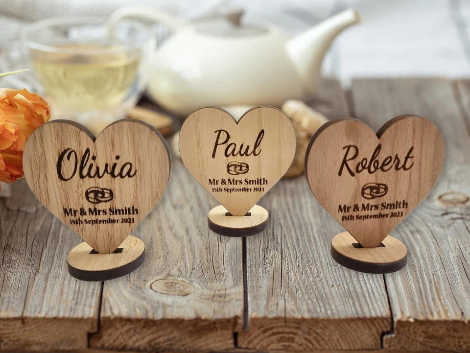 Personalized Engraved Laser Printed Wooden Heart Model Wedding Place Card Table Keepsake Unique Event Decor Gift 2.75x2.55