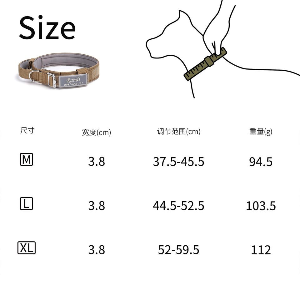 Personalized Engraved Tactical Collar Reflective Lightweight Pet Dog Collar Anti-Pulling Leash Large Dog Neckband