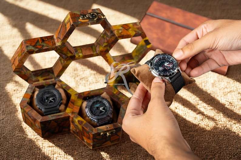 Personalized Epoxy Rosewood Resin Watch Box For Men Luxury Wooden Jewelry Organizer Unique Watch Display Case Birthday Or