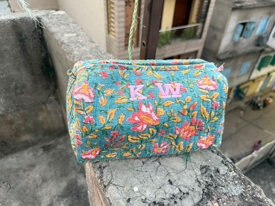 Personalized Floral Makeup Bag: Quilted Cosmetic Travel Pouch,Bridesmaid Gift,Custom Embroidered Flower Makeup Bag,Monogrammed