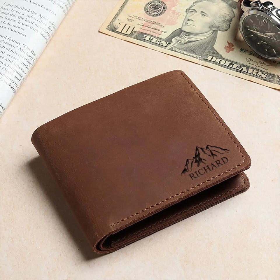 Vintage Style Leather for Him Personalized Fold Closure Groomsmen Gift Anniversary Present for Boyfriend Husband Custom Engraved