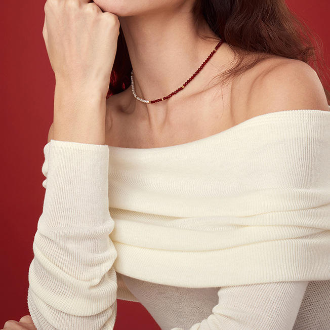 Personalized Forest Style Fashion Jewelry Sets Freshwater Pearl Red Agate Splicing Versatile Metal Bead Inspired Simplicity