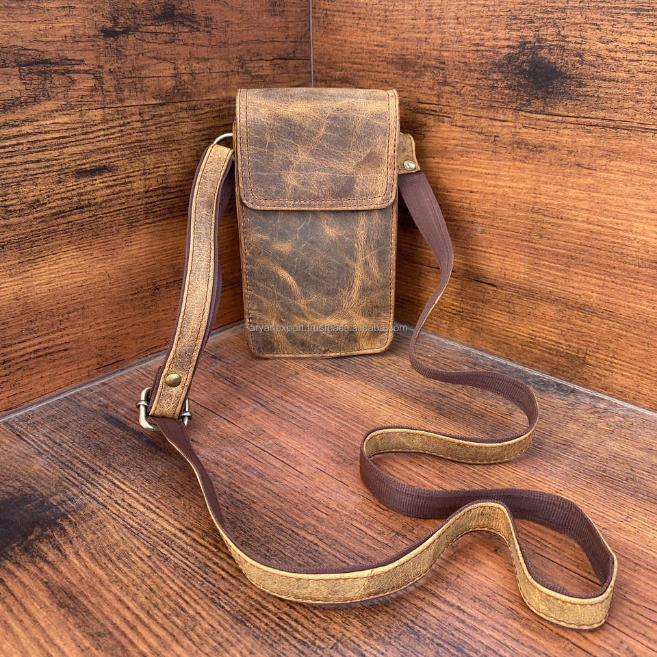 Personalized Full Grain Leather Shoulder Bag for Cell Phone Cow Leather Crossbody Phone Bag Small Practical Natural Leather Bags