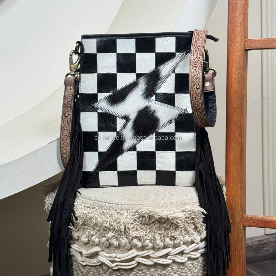 Personalized Genuine Cowhide Leather Crossbody Bag Luxury Design Shoulder Bag for Women's New Style checkered Pattern Handbag