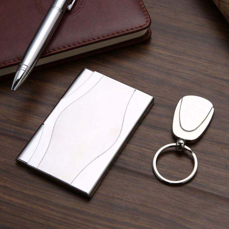 Personalized Gift Set: Engraved Pen, Keychain & Card Holder - Promotional Business Gifts for Corporate Branding