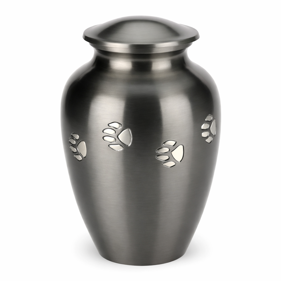 Personalized Gold Metal Pet Memorial Urn with Name and Date Engraving and Paw Print Motif