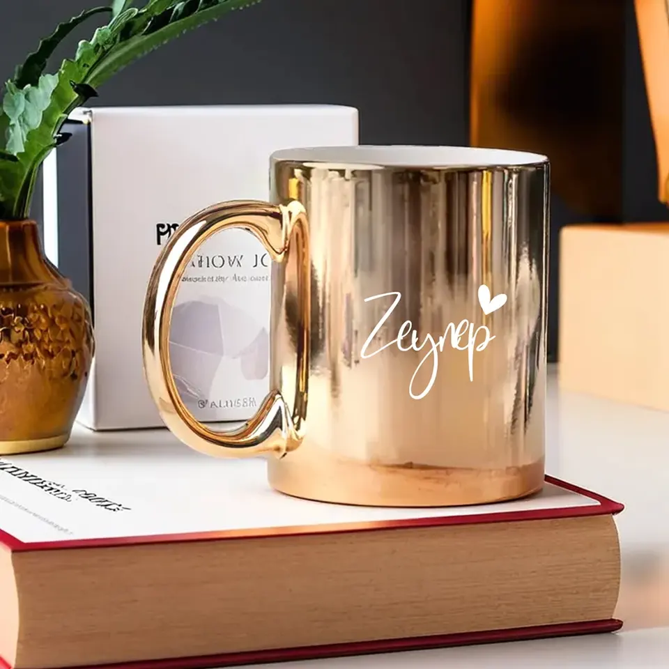 Personalized Gold Mug Name Handmade 200ml 400ml Capacity Water Cup Dishwasher Microwave Safe Tall Height Hot Thermal Gold Handle