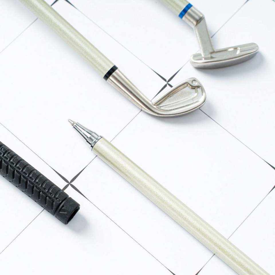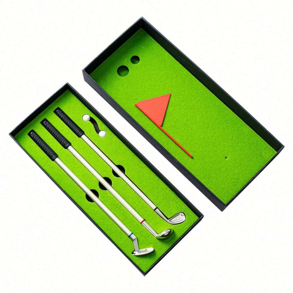 Personalized Golf Gift Pen Set Mini Desktop Golf Green with Metal Golf Club Ballpoint Pens for Promotional Gift