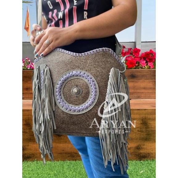 Personalized Hair on Metallic Suede Leather Fringe Crossbody Bags Hot Selling Genuine Leather Middle Concho Shoulder Bags
