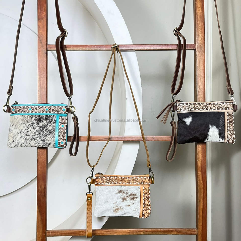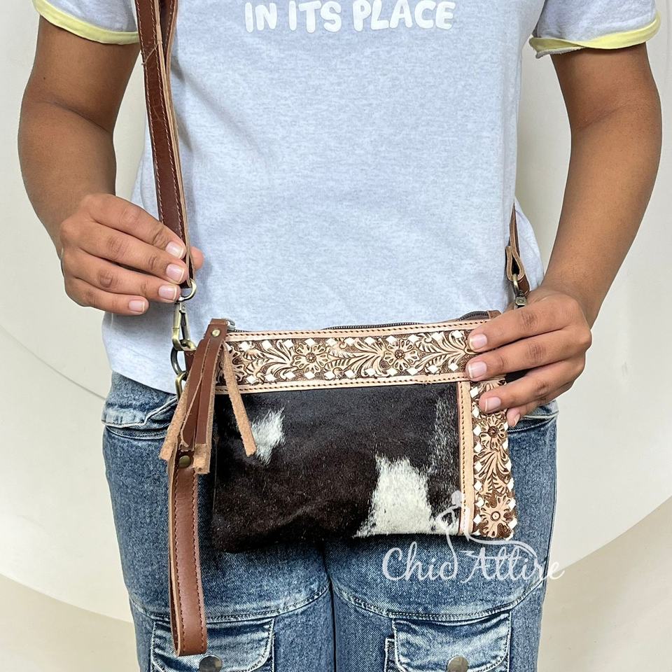Personalized Handmade Cowhide Leather Small Crossbody Bag Western Tooled Floral Sling Bag With Wristlet Shoulder Bag for Women's
